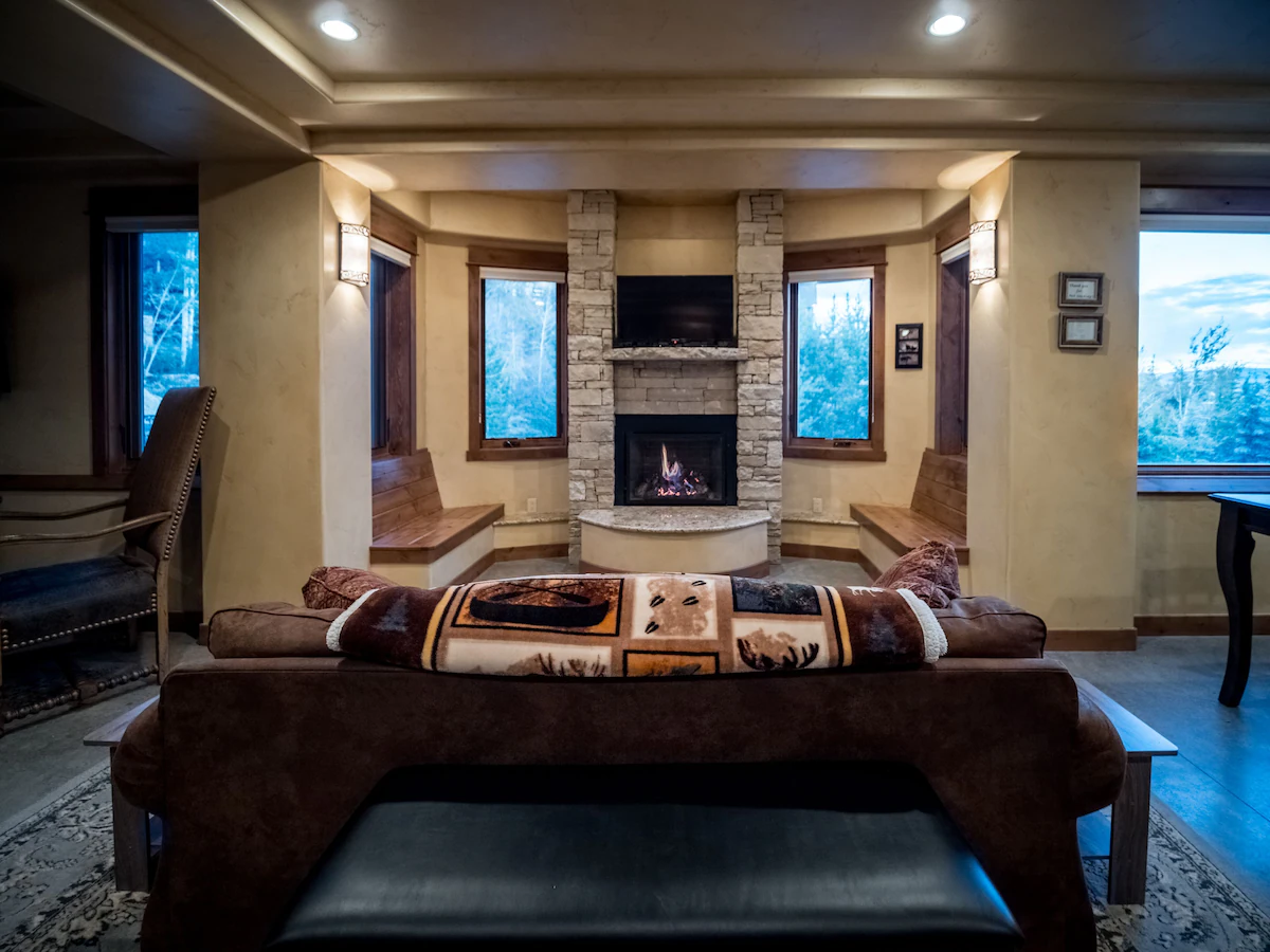 Step into the cozy interior of Mystic Mountain Lodge, greeted by a crackling fireplace that welcomes you after a day of adventure. With a warm and inviting layout, you’ll quickly feel right at home.